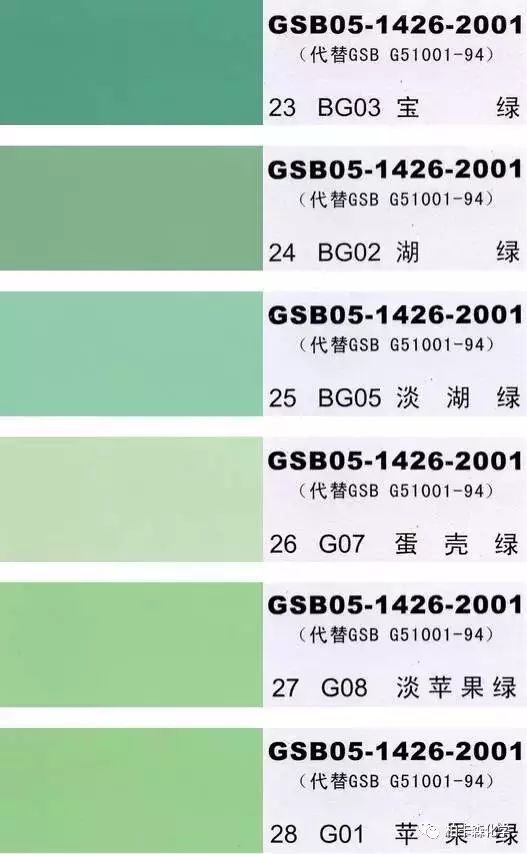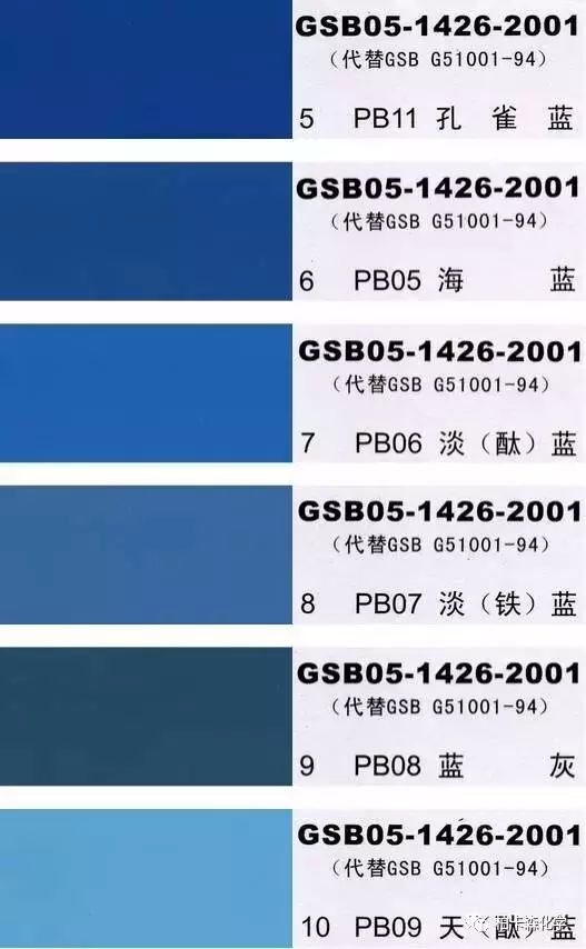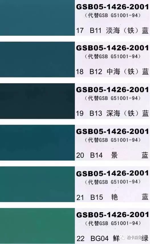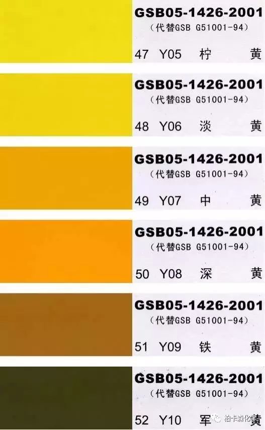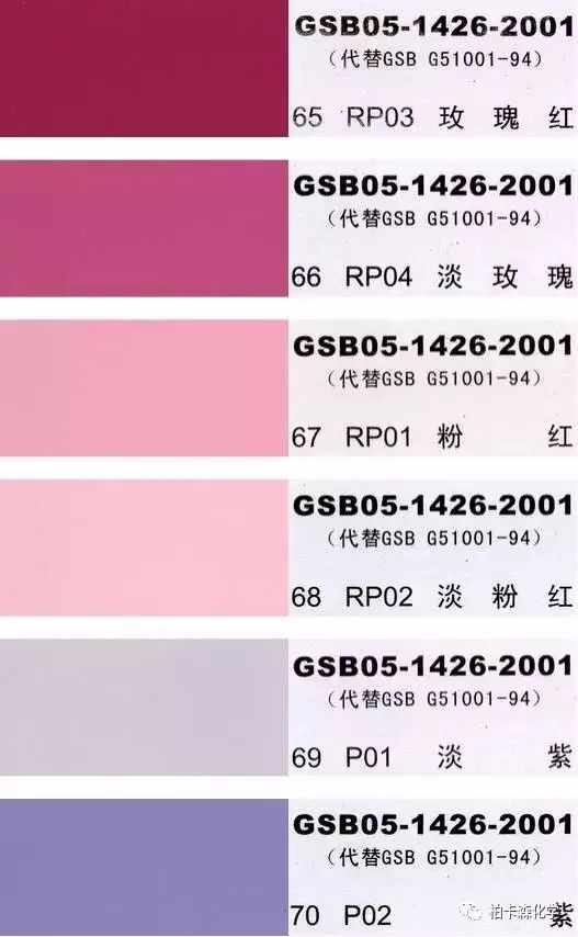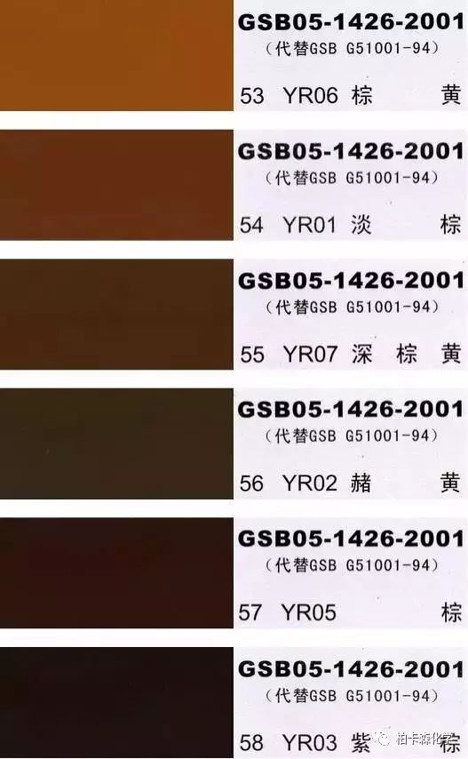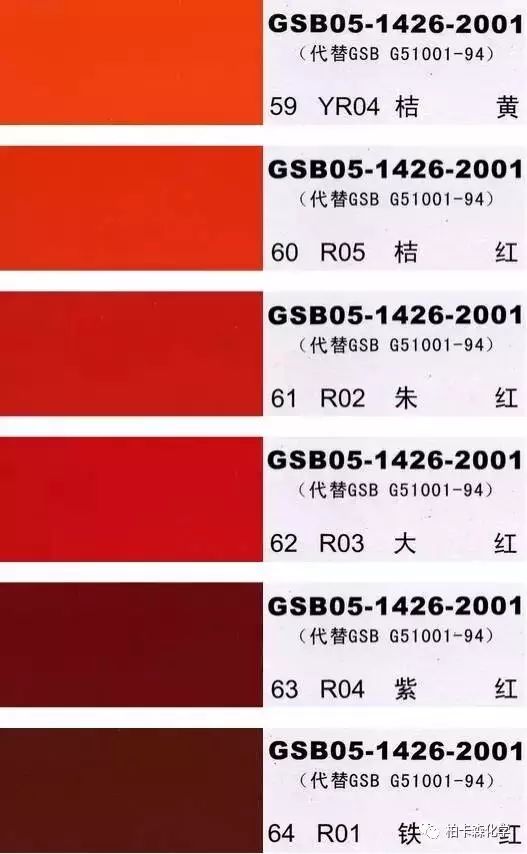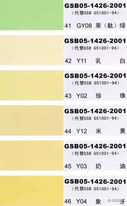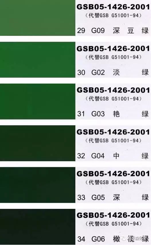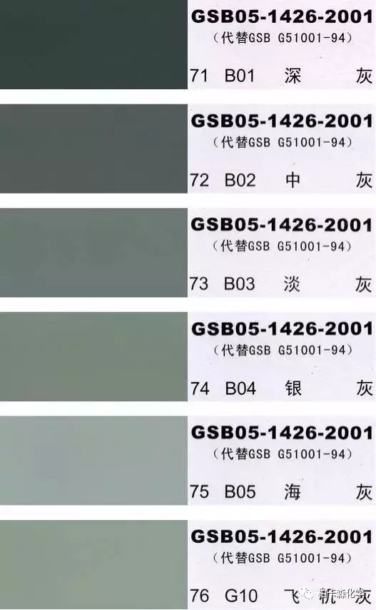 GSB05-1426-2001;全國涂料和顏料標準化技術委員會修訂,含83種顏色,光面效果。每個顏色都有國家統一標準的編號,適用于油性涂料方面使用。